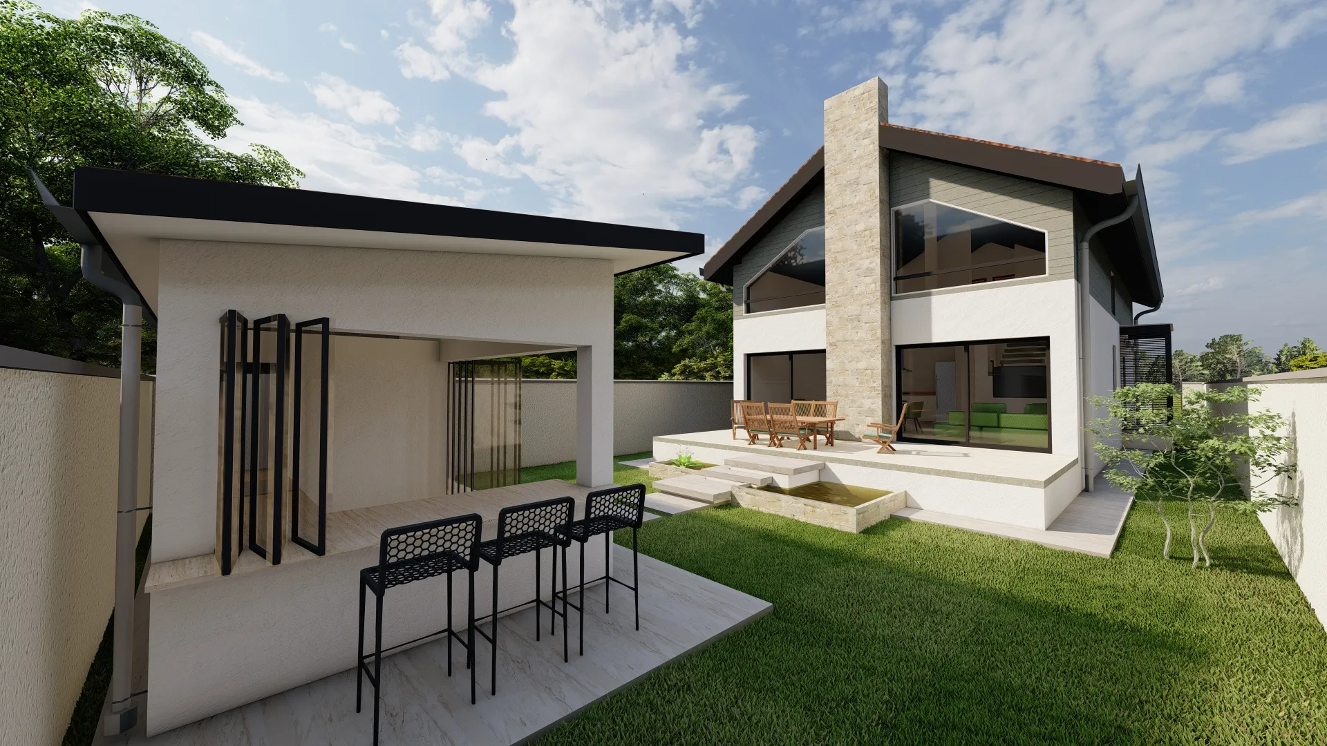 Proiectare casă nouă de 250 mp cu 3 dormitoare și garaj