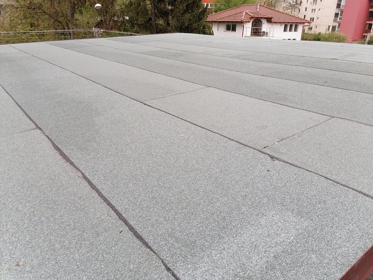 Hirdroizolatie acoperis bloc de locuinte P+4, hidroizolatia actuala este realizata din membrana bituminoasa.