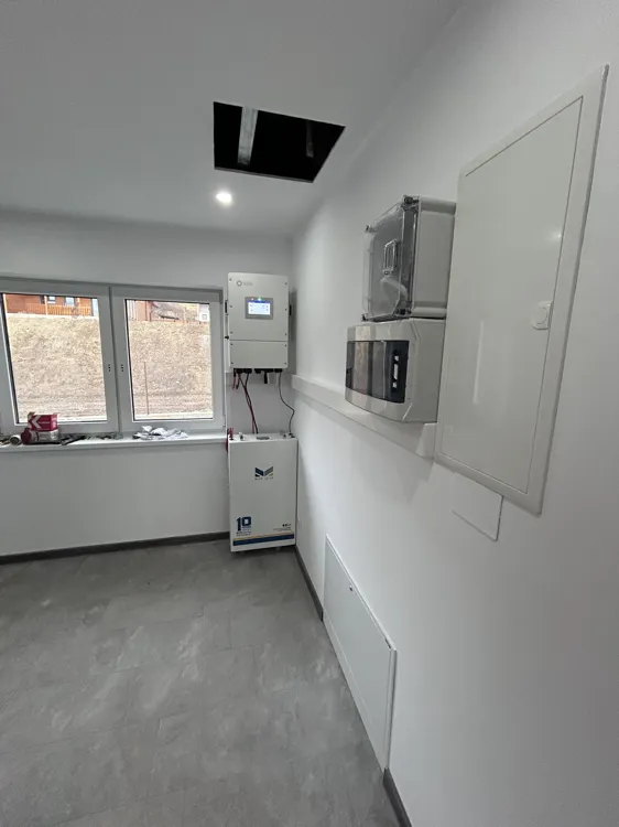 Casa este legata la curent Incalzirea si apa calda menajera este data de o pompa de caldura Daykin Spatiu disponibil pentru siste 50 mp pe acoperis de panouri sandwich.
