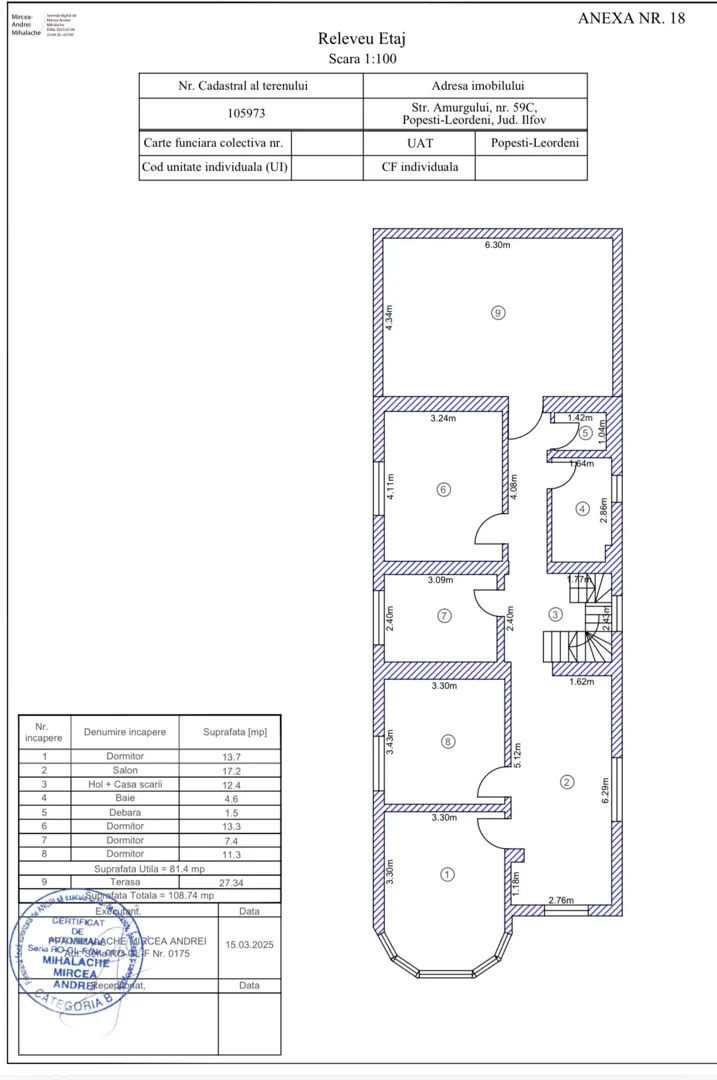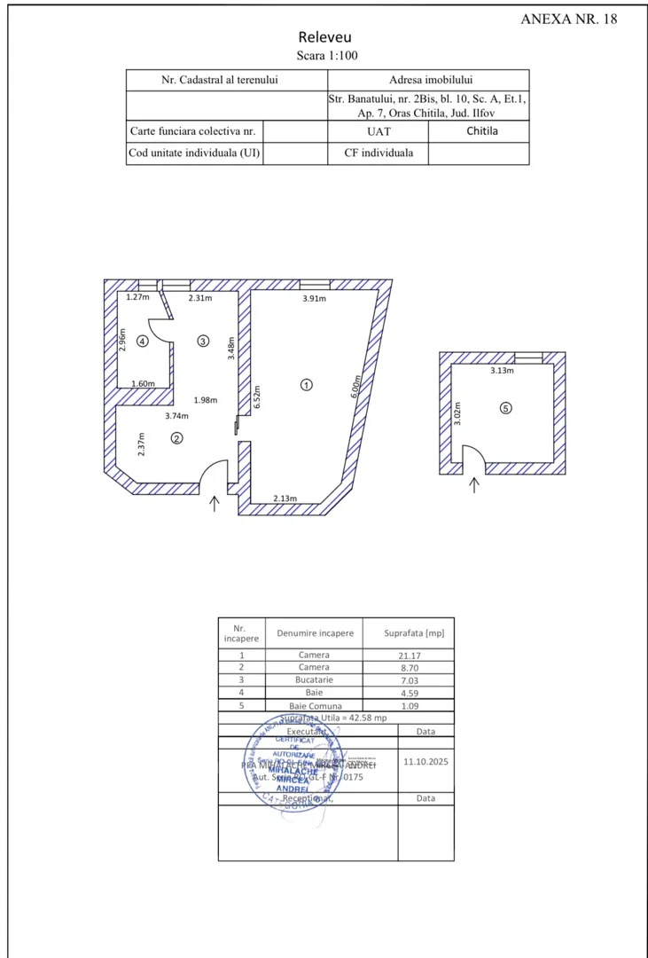 Serviciu de cadastru și intabulare pentru un apartament.