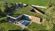 Casă dreptunghiulară 14x7 m, două dormitoare, două băi, living open space.