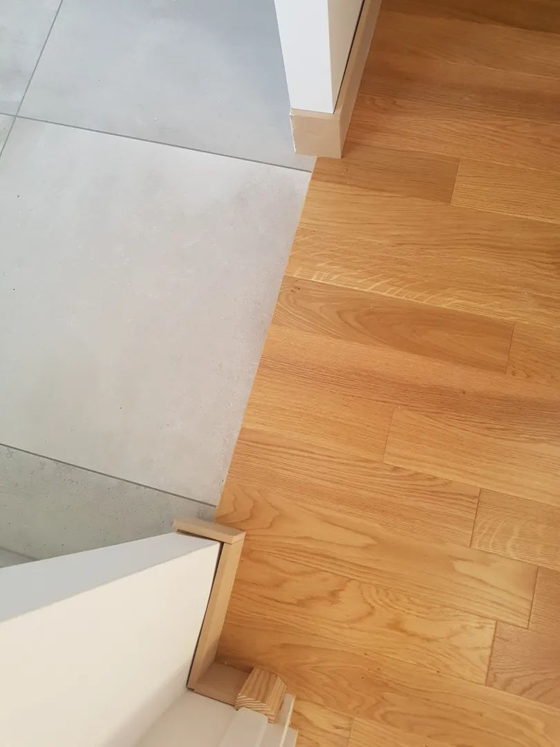 Este vorba despre balcon+bucaterie+ hol de pus gresie stil parchet