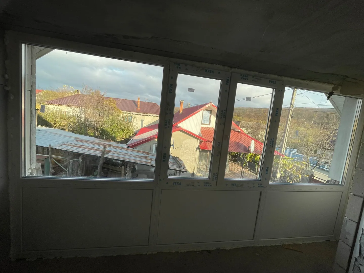 // h alb este un balcon cu 3 laturi cele 2 laterale vor fi din panel partea din mij vreau fereastra dubla pe mijloc partea de jos peste tot