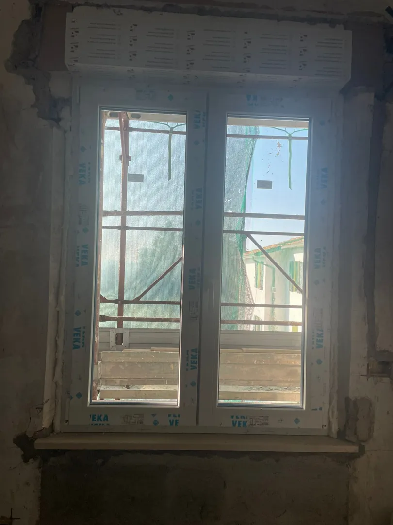 F1: 2,45x1,25; profil alb 7 camere, geamuri tristrat cu sticla cu protecție termica și fonica, se va împărți în 3 ochiuri egale, iar mobile vor fi ochiurile din margine, ochiul din mijloc va fi fix. Cele doua ochiuri mobile se vor realiza cu deschidere în doua planuri; F2: 1,25x1,25; este fereastra de dormitor culoare alb, formata din doua ochiuri egale mobile în care cel din stânga cum privim dinspre interior se va deschide în plan orizontal, iar cel din dreapta în doua planuri, fara montant central geam tristrat cu prot. termica și fonica; F3: 0,90x1,25 format dintr-un ochi mobil cu deschidere în doua planuri, geam tristrat cu protecție solara și termica la bucătărie spre Sud, culoare alb. Plase de țânțari, transport, demontat tâmplăria veche cu recuperare și montat tâmplăria noua, glafuri interior și exterior. Dimensiunile sunt mai mari cu aproximativ 5 cm decât dimensiunile golului de fereastra existent.