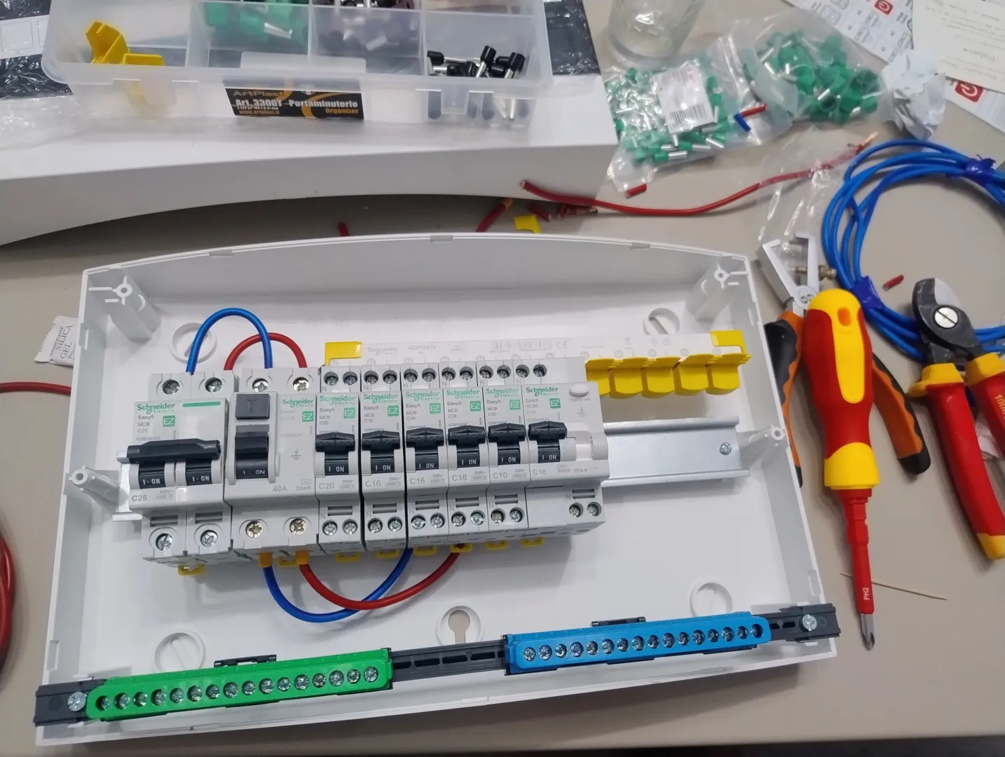Schimbat panoul electric vechi cu unul nou si verificat prizele din casa.