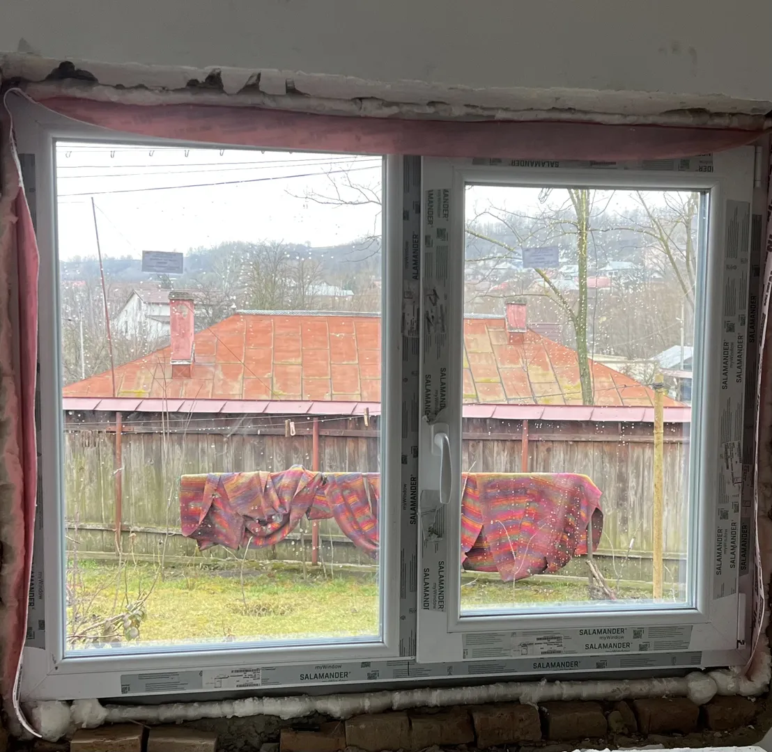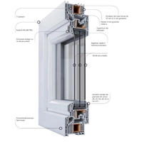 Inaltime cm,Lățime cm alb sticla dubla,profil 5 camere.Geam dubla deschidere iar un geam rabatabil+glaft exterior Aluminiu.