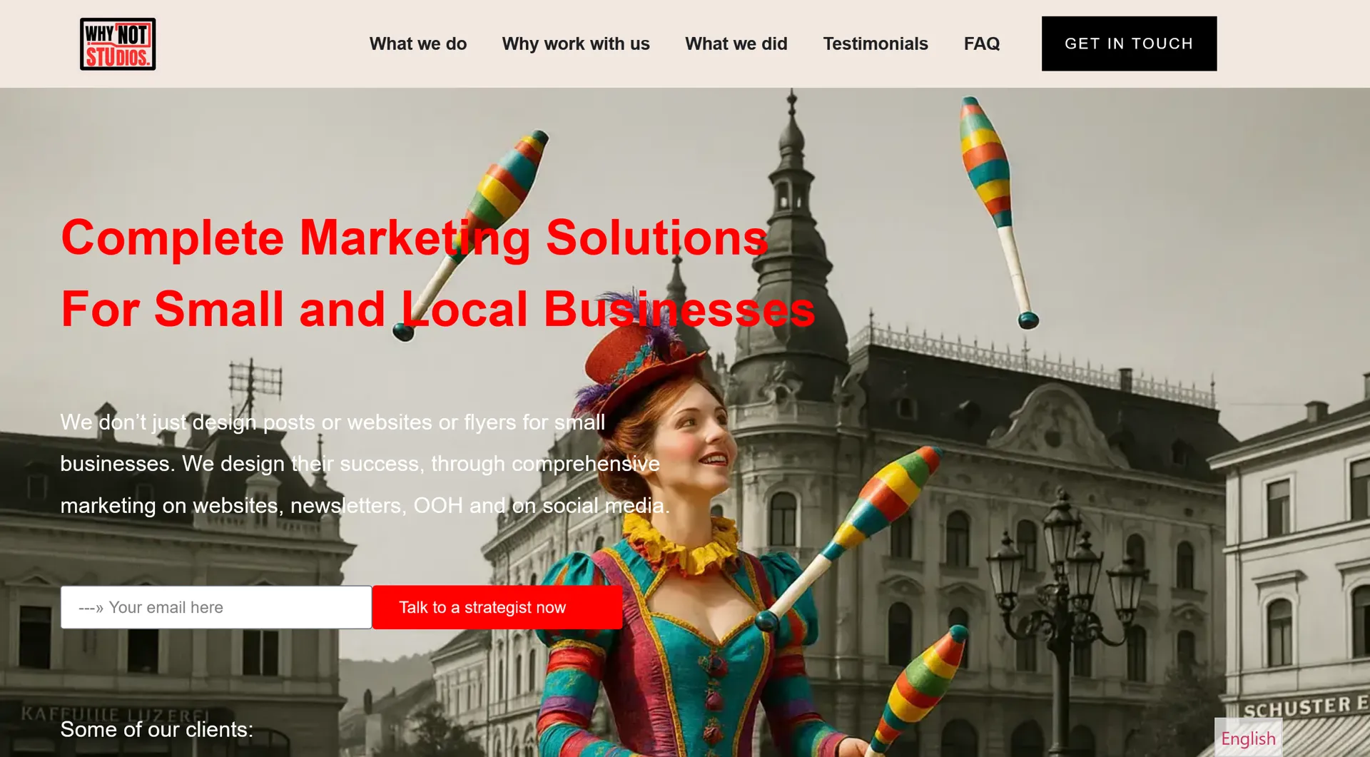 Despre noi: WhyNot? Studios (Marea de povești SRL) e o companie care ajută afacerile mici și mijlocii. Ne-am dezvoltat pe trei paliere diferite: marketing digital, servicii de management (inclusiv scriere proiecte europene, management proiect, SSM, PSI, GDPR) și servicii de organizare evenimente și închirieri echipamente. Înțelegem că o companie mică nu are bugete uriașe pentru fiecare sarcină, așa că am creat pachete complete, accesibile, adaptate nevoilor fiecărui partener.