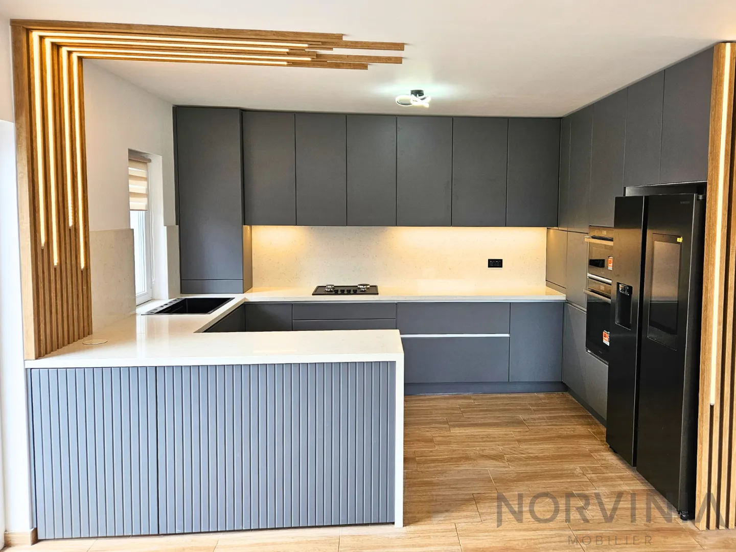 Despre noi: NORVINIA este o firmă de mobilier la comandă din Brașov, cu focus pe soluții moderne, premium, realizate din MDF termoformat și blaturi din cuarț compozit. Proiectăm și executăm mobilier pentru toată casa, pentru clienți rezidențiali și business, în Brașov și împrejurimi. Folosim soft-uri profesionale de la măsurarea spațiului până la proiectare 3D, ca să vezi exact cum va arăta mobilierul. Oferim montaj și garanție 48 de luni. Showroom-ul nostru se află pe str. Pictor Ion Andreescu, 2.
