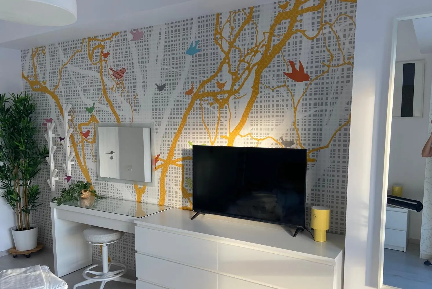 Livingul noului apartament este o problemă pt mine. Pentru ca doresc la bucataria open space o insulă mica cu 2 scaune, iar în living o masa de 6 persoane. Televizorul care îl am are o diagonala de cm, deci as dori sa nu fie extrem de aproape coltarul de el. Iar cu usa de la terasa, indiferent ca acolo va veni masa, sau coltarul, trebuie neapărat să se poată deschide. Televizorul poate fi pus la mijlocul peretelui cu clima, sau pe peretele opus celui cu terasa,am nevoie de un specialist pentru acest proiect