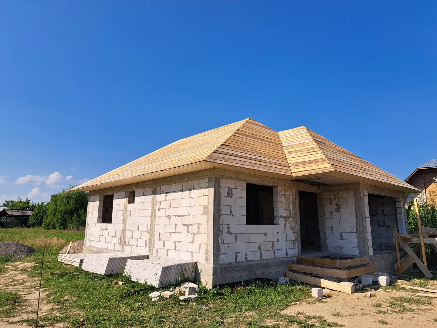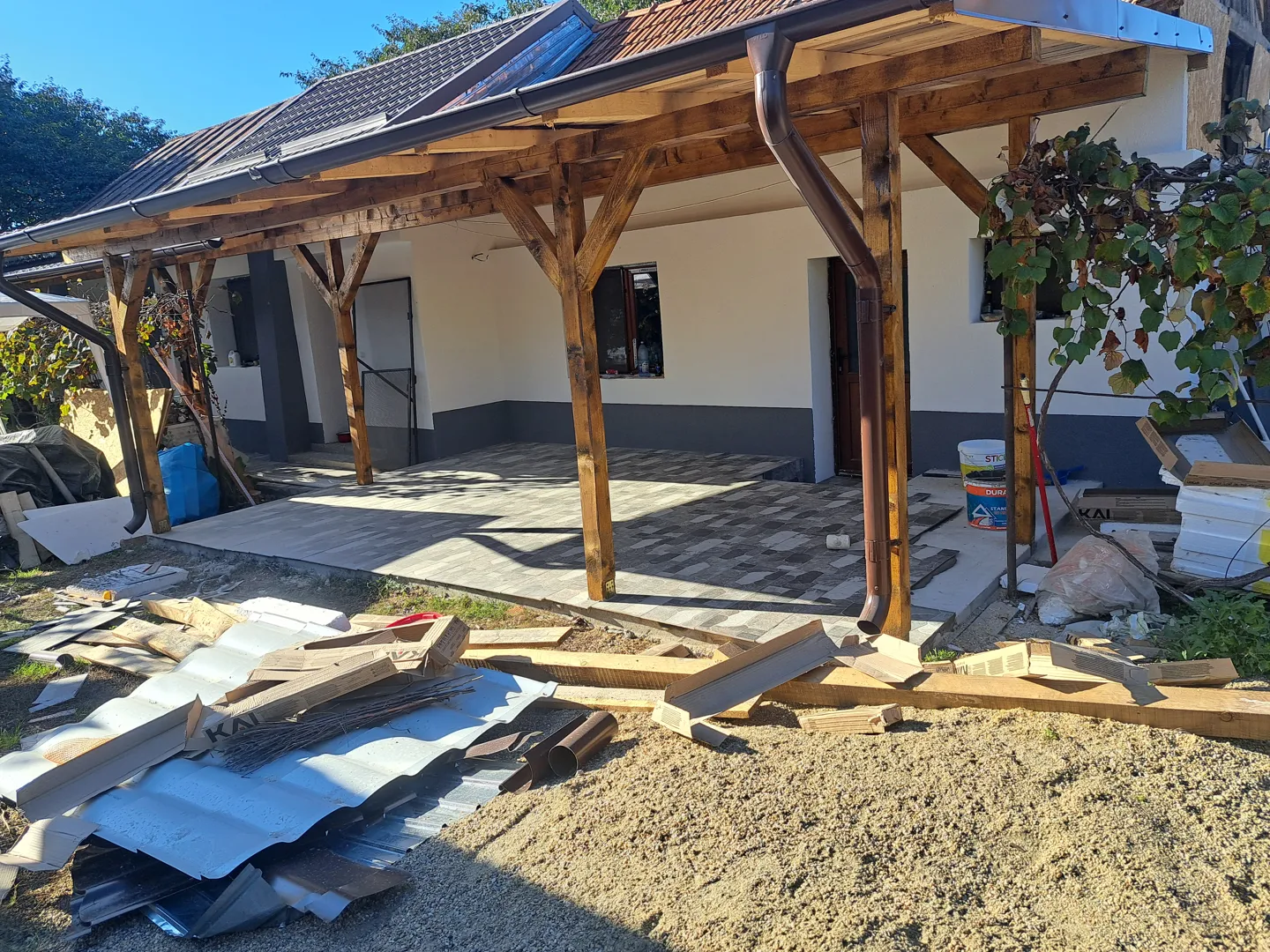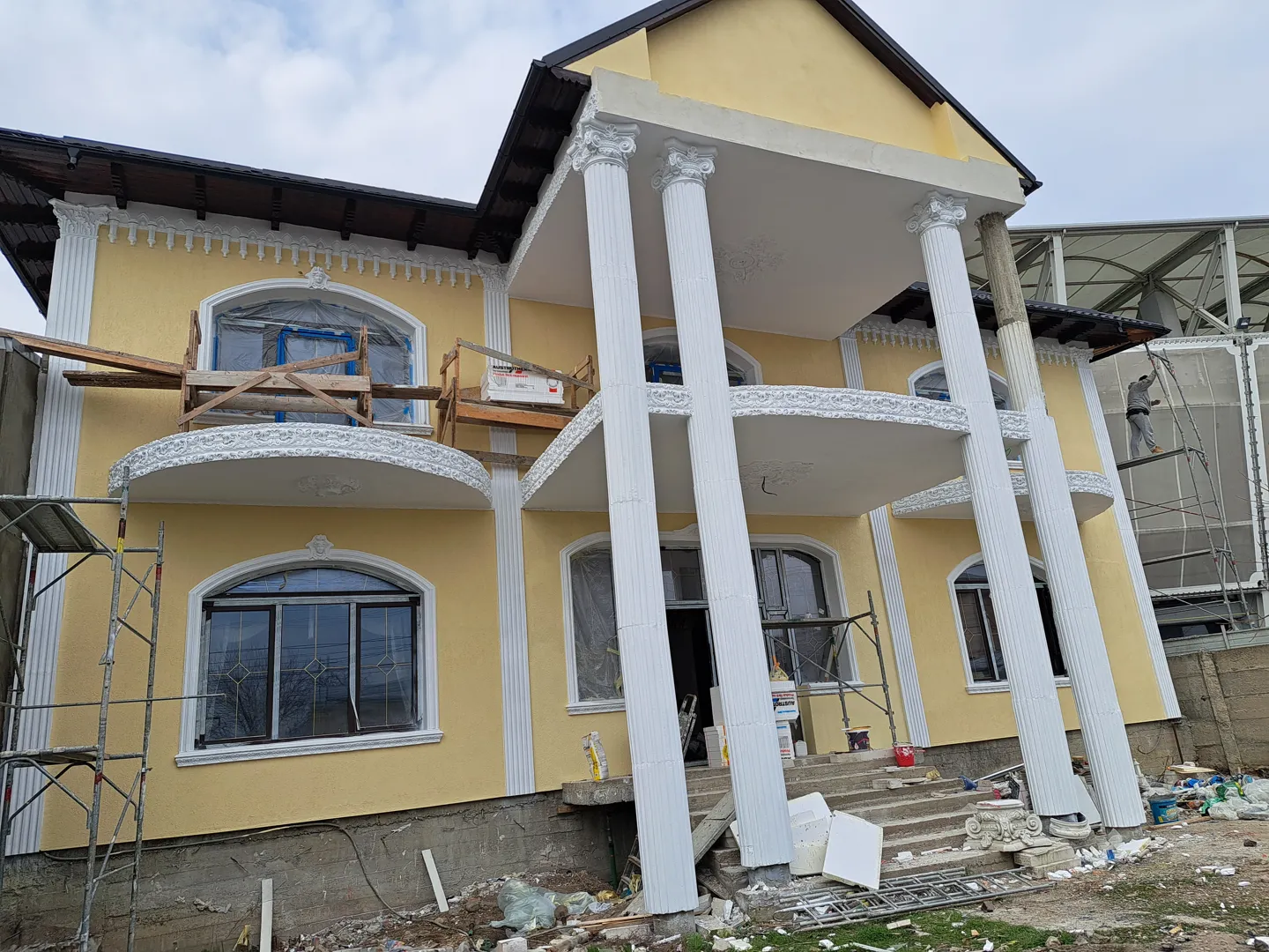 Caut firma (contract si garantie lucrari) pentru finisaj fatada casa: - 55mp placare cu caramida aparenta klinker (24,5x6,5x0,65, rosturi de 5 mm), conform planurilor de arhitectura (3 campuri, si ancadramente geamuri- brauri si arcade). Inclusiv chituit. - 17 pervazuri de la etaj, de placat cu xps si adeziv armat cu plasa - mp de aplicat decorativa alba bob de orez - 20 console decorative (din polistiren), de aplicat rasina pe laterale si de vopsit cu lavabila alba sau decorativa alba Casa are 6,8 m inaltime la streasina, parter + etaj, perimetrul 48 m. Termosistemul si masa de spaclu armata cu plasa sunt deja aplicate. Parterul este deja placat partial cu klinker. Rog oferta sa contina un deviz de lucrari cu preturi unitare si pret final, calculat. SCHELA trebuie sa fie inclusa in pret. Nu lucram cu avans. Plata dupa fiecare lucrare finalizata. Materialele le procuram noi. Consumabilele (trafaleti, gletiere, galeti, taietor ceramica, benzi mascare, scari, platforme, etc) rugam sa fie incluse in pret.