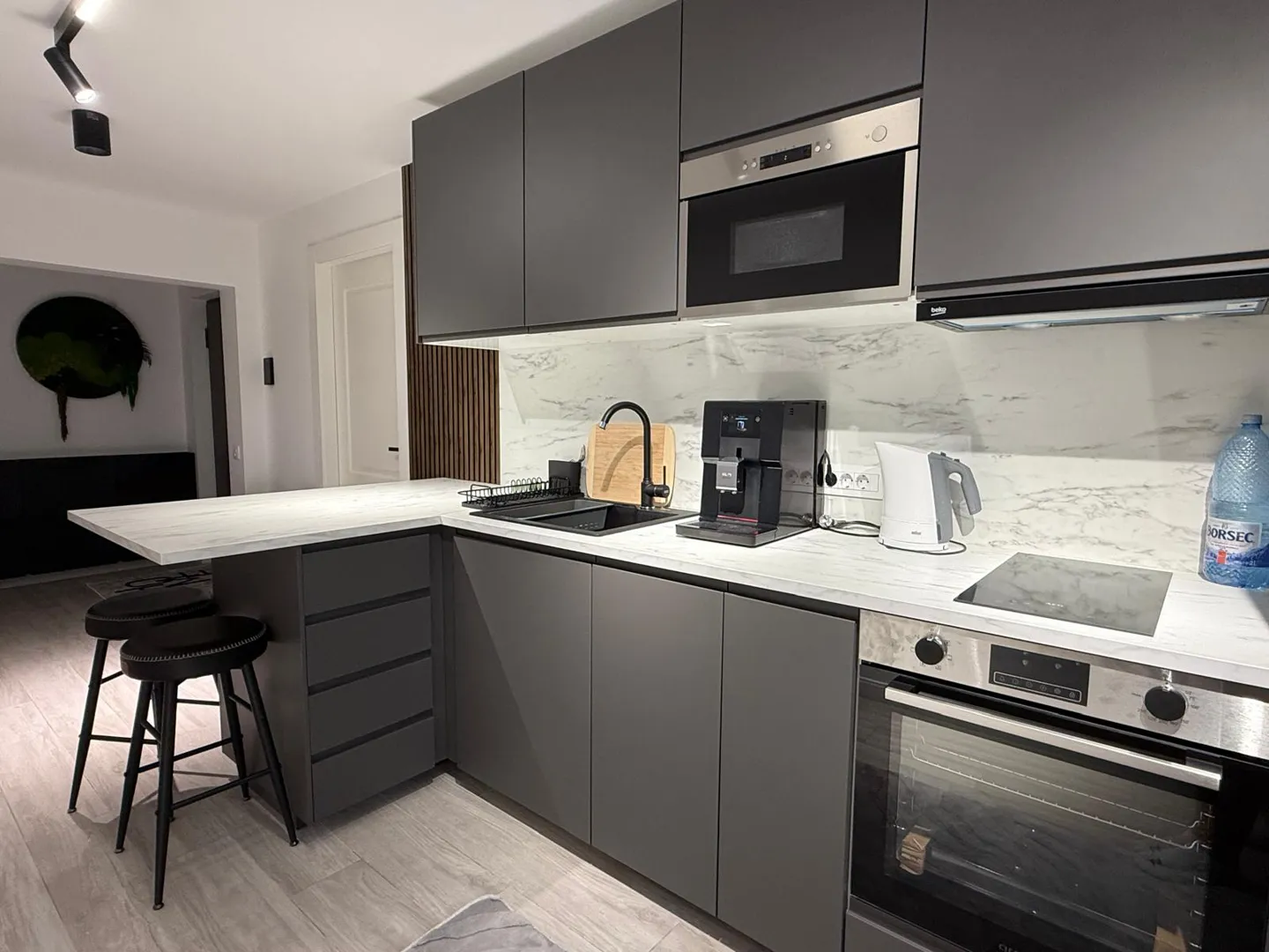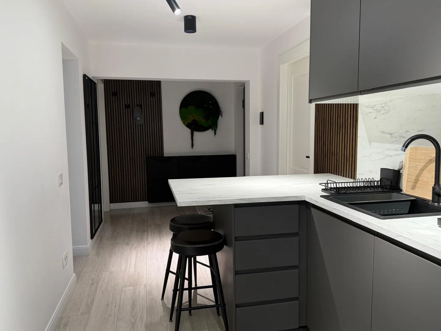 mobila este de la ikea si este asamblata si suspendata pe perete!! doresc urmatoarele : 1. sa fie prinse corpurile inre ele si puse in boloboc ( 3,10 m sus + 3,10 m jos) 2. montaj blat + debitare pt ca este prea lung + decupat plita 2 ochiuri + decupat chiuveta 3. carotat hota 12 cm + 15 cm ( 2 corpuri) 4. decupat corp chiuveta ptr. teava de scurgere + pus o polita de intarire pt stabilizarea corpurlui - am materialul 5. decupat corp suspendat prin care trece teava de gaze partea din stanga langa zid de sus pana jos ) 6. montaj hota incorporabila - telescopica Multumesc.