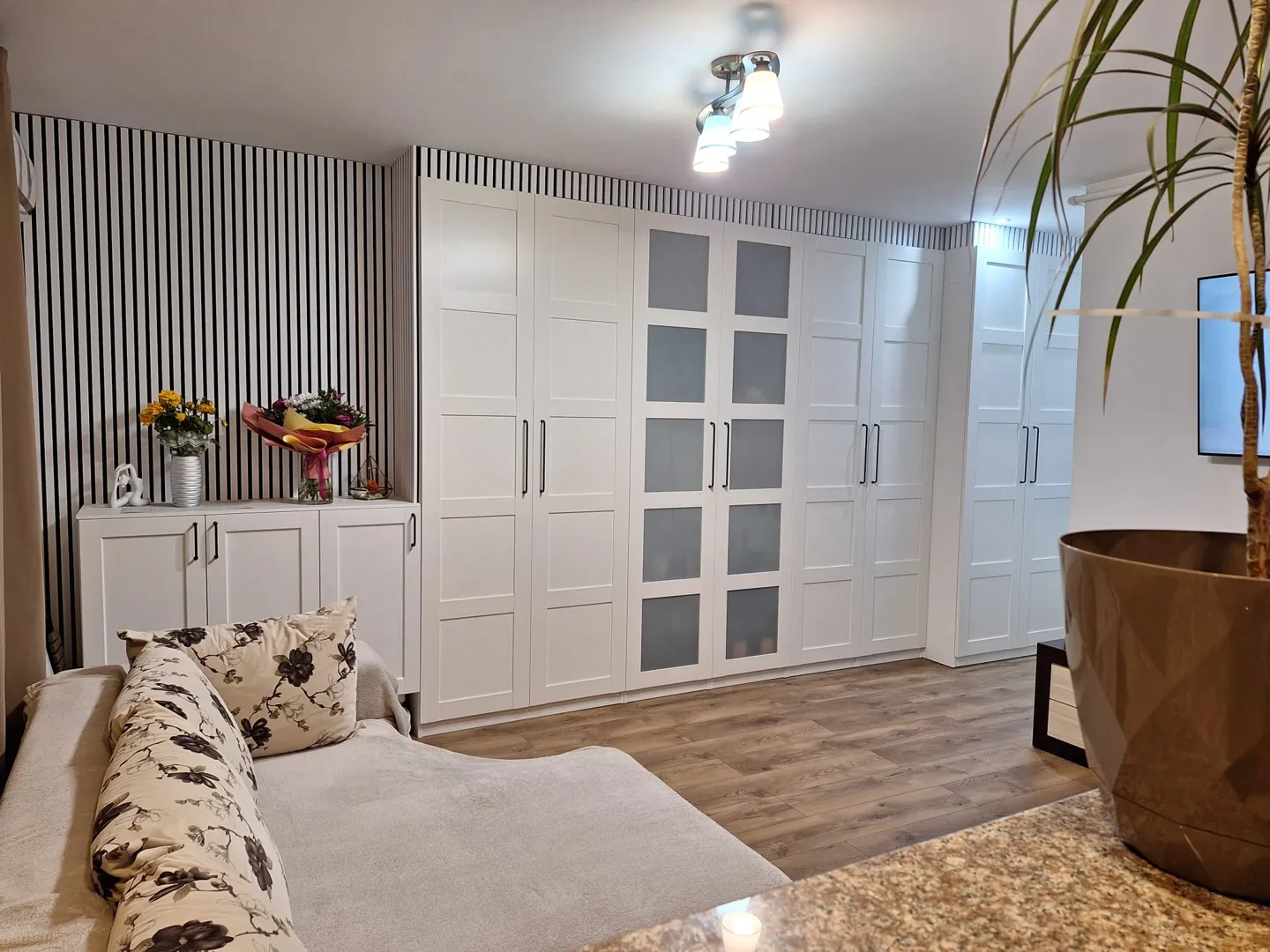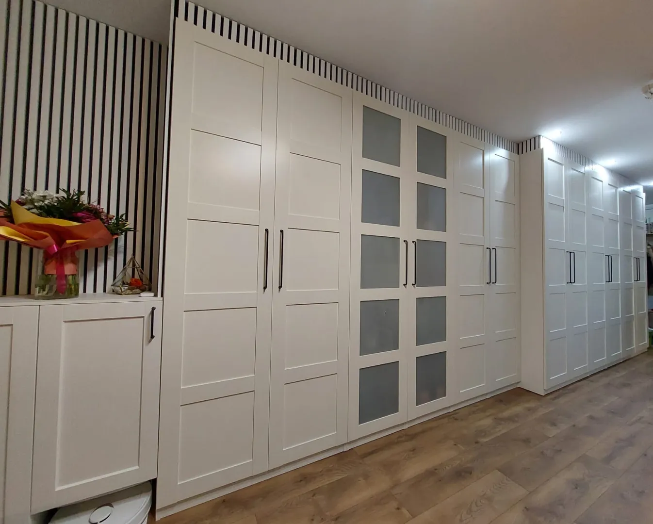Dormitor 1 copil: 1x dulap PAX x; 2x etajera KALLAX. Dormitor 2 copil: 1x dulap PAX x; 1x Biblioteca Billy 80x; 2x noptiere MALM; 1x birou MALM; 1x oglinda; 2x etajera KALLAX. Dormitor 3 copil: 1x dulap PAX x; 2x Biblioteca Billy 80x; 2x noptiere MALM; 1x birou MALM; 1x oglinda; 2x etajera KALLAX. Dressing: 4x cadru PAX x; 2x cadru PAX 75x. Dormitor matrimonial: 1x dulap PAX cu unitati de colt. Hol: 2x dulap PAX x35x.