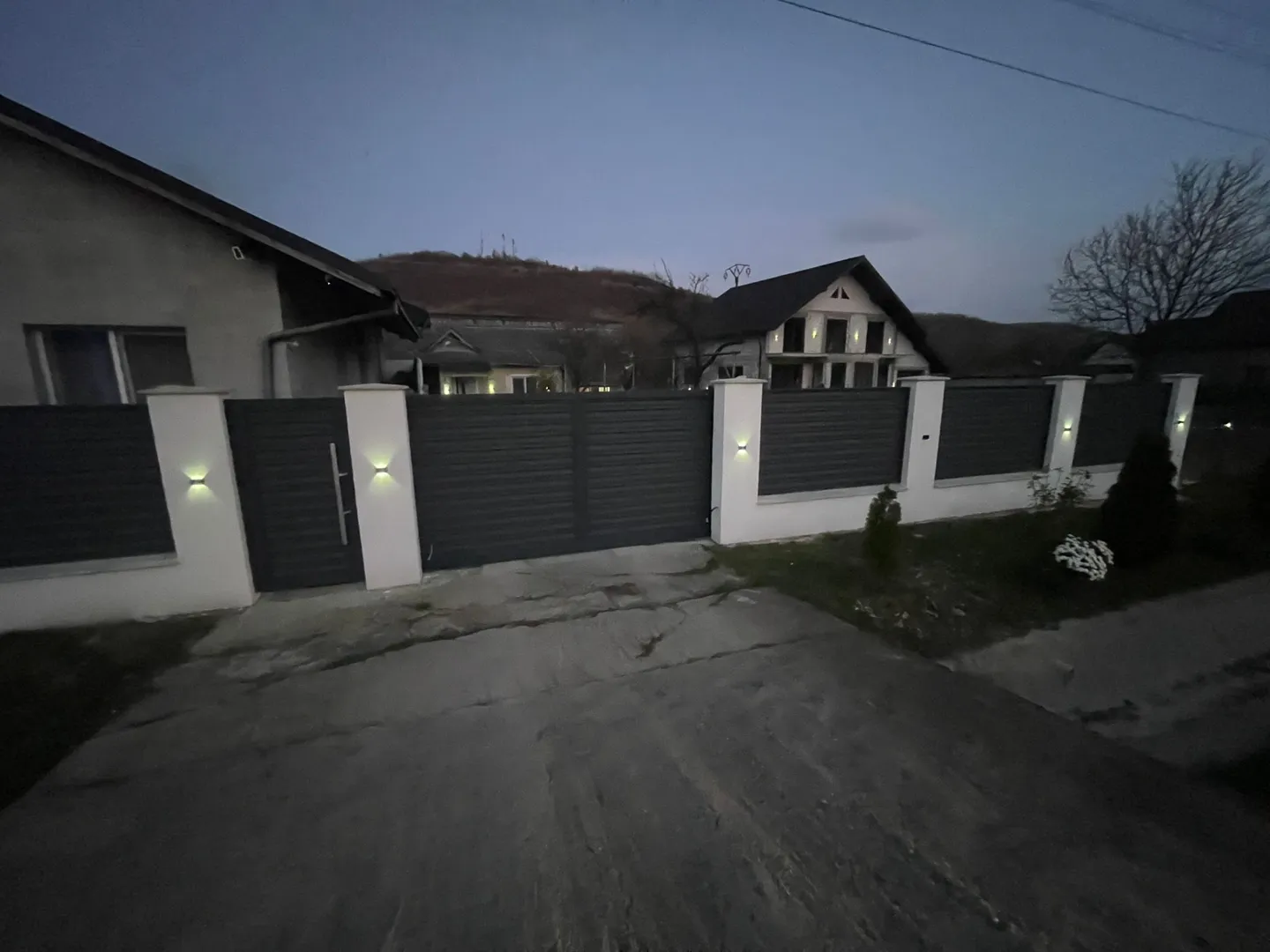 Este poarta veche. Stâlpii s-au inclinat. Nu se mai închide bine.