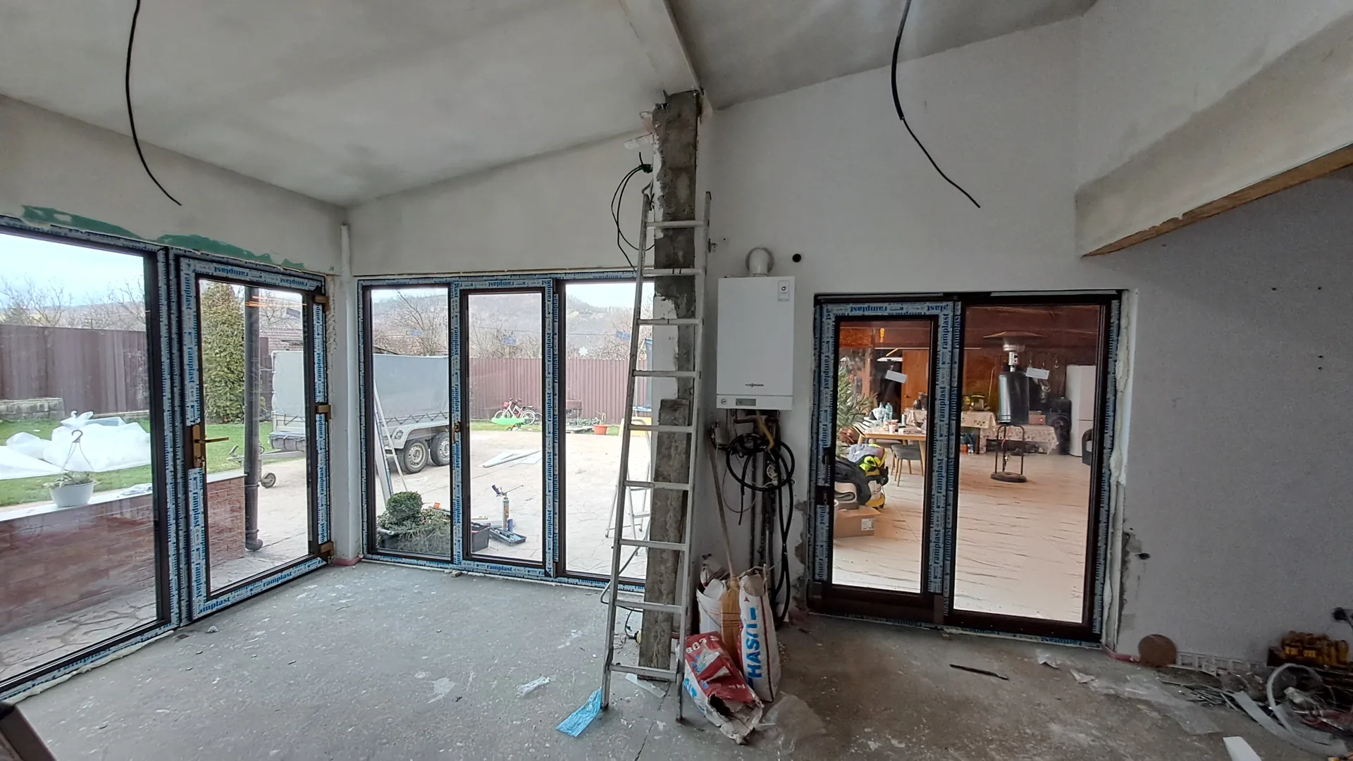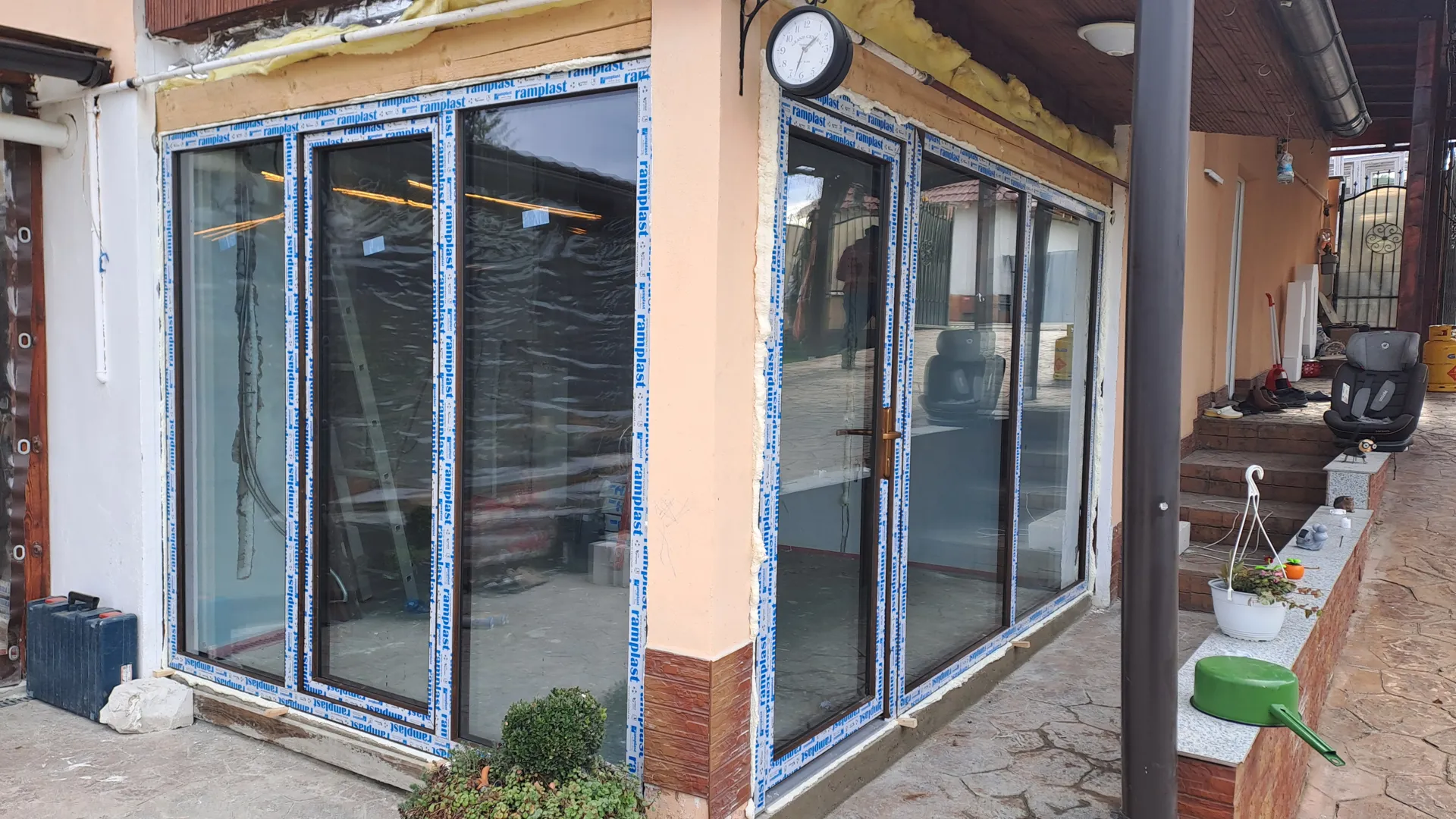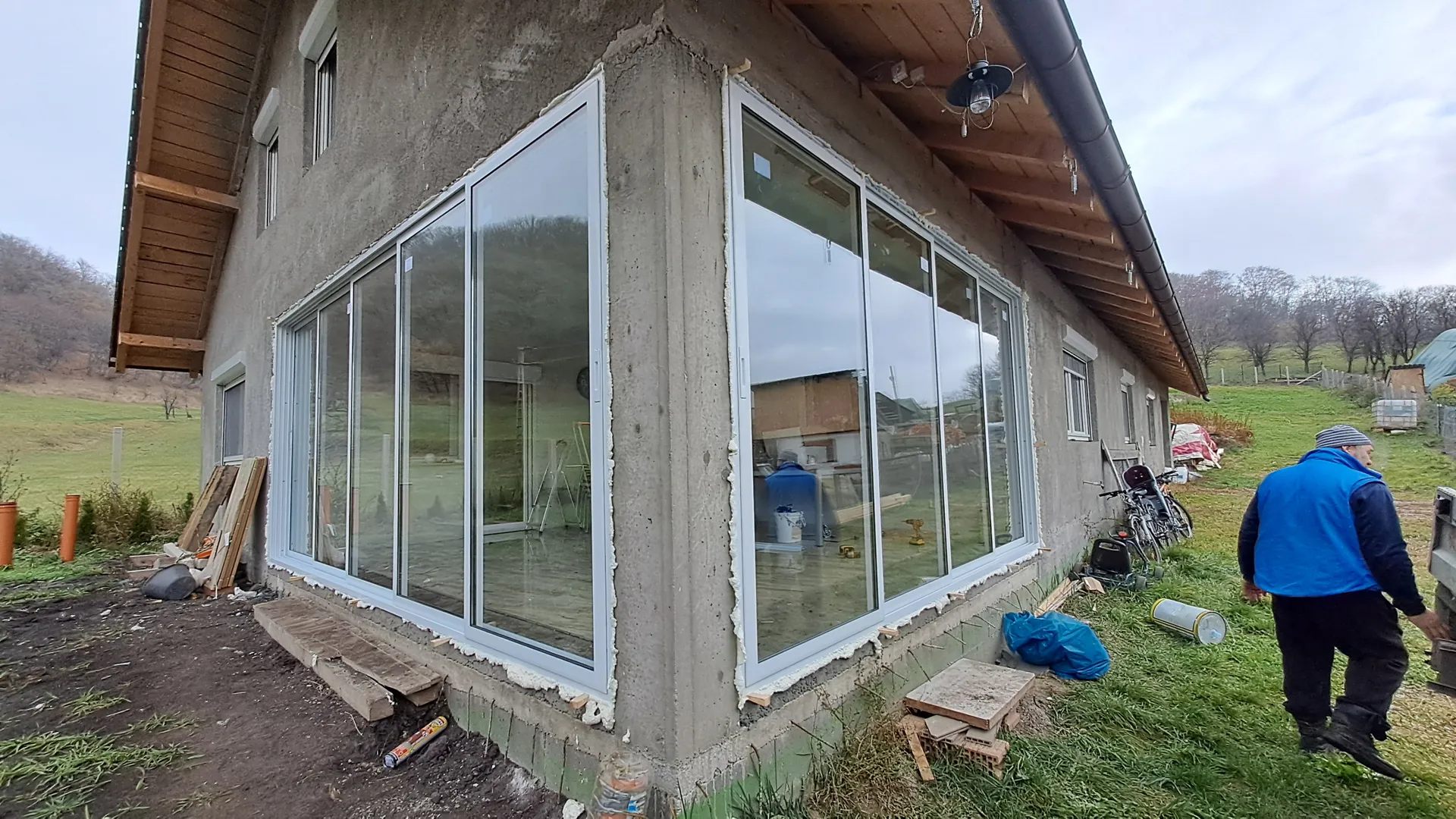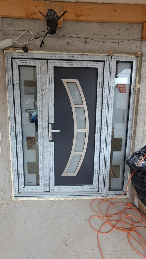 2 ferestre cu dim /, 2 usi 85/, perete vitrat /, perete vitrat /,tamplarie salamander bluEvolution92, 4anotimpuri,alb ,tripan,cu ferestre si geamuri oscilobatante,plase insecte.