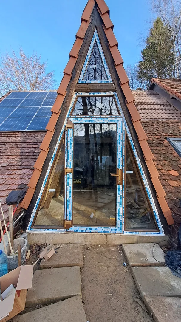 fereastra triunghiulara pentru pod, dimeniunile sunt mai putin importante, in functie de fereastra aceasta se va face peretele. Ideea de baza este ca fereastra sa permita acces pe ea, nu usa, nu chepeng, fereastra cu sticla. Multumesc. Apreziez foarte mult sa-mi dati un raspuns rapid.